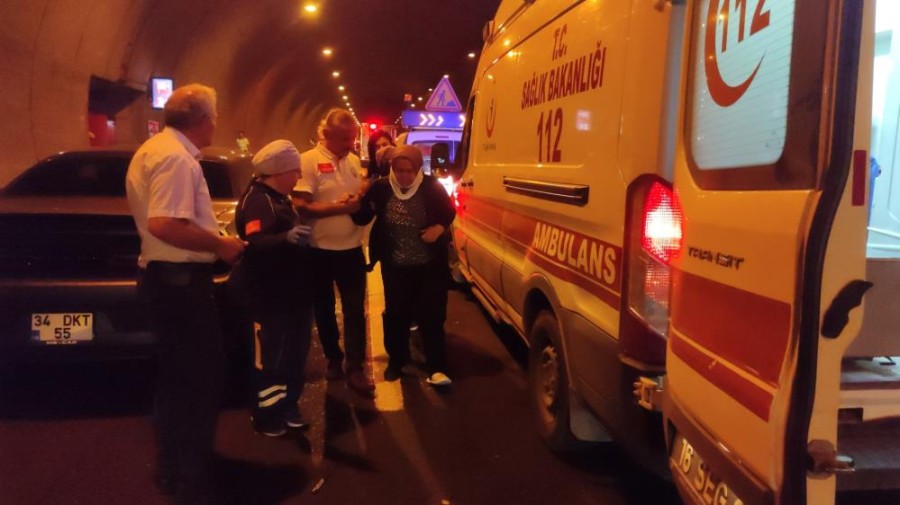 Orhangazi tünelinde aşırı hızlı olduğu iddia edilen bir otomobil, önünde seyir halindeki bir otomobile çarptı. Kazadan sonra öndeki otomobil bir anda alev aldı. Araçta bulunan 1'i kadın 3 kişi son anda çevreden yetişen vatandaşların da yardımı ile araçtan indirildi. Alev topuna dönen otomobile tünel içindeki yangın söndürme sistemindeki yangın tüpleri ve hortumlarla müdahale edildi. Kazada yanan otomobildeki kadın hafif yaralandı.