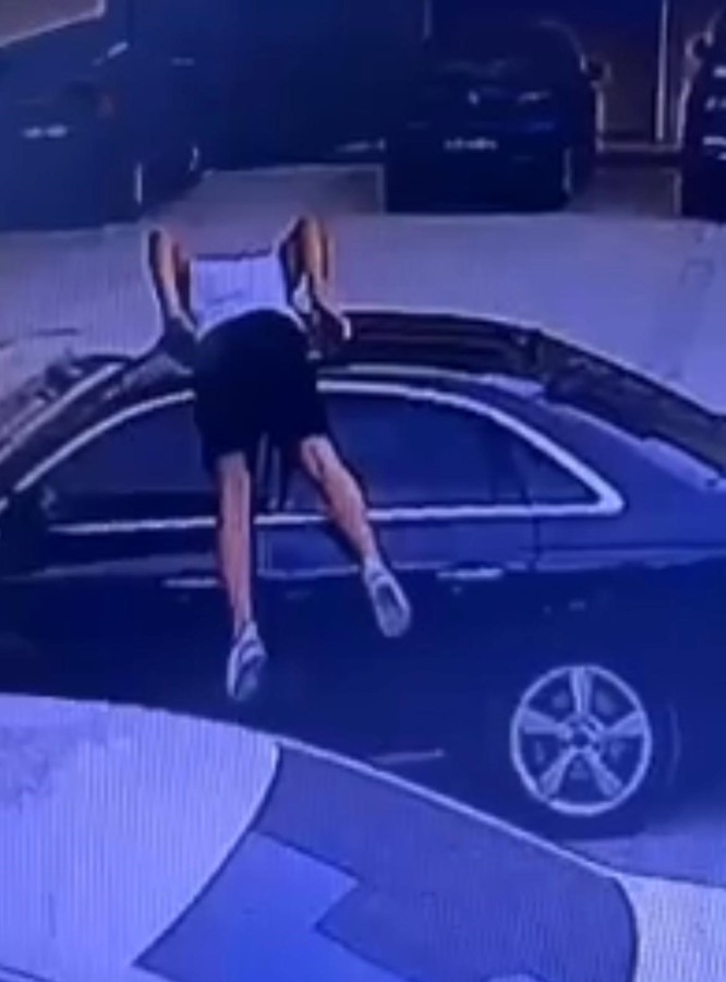 Otomobile tırmanan şüpheli, cam tavanı açmak için kuvvet uyguladı.