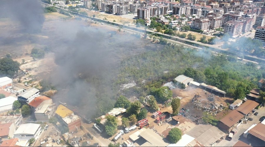 Bursa'da otluk alanda çıkan ve kısa sürede büyüyerek odun depolarını tehdit eden yangın, ekiplerin bir saat süren müdahalesi sonrası kontrol altına alındı.