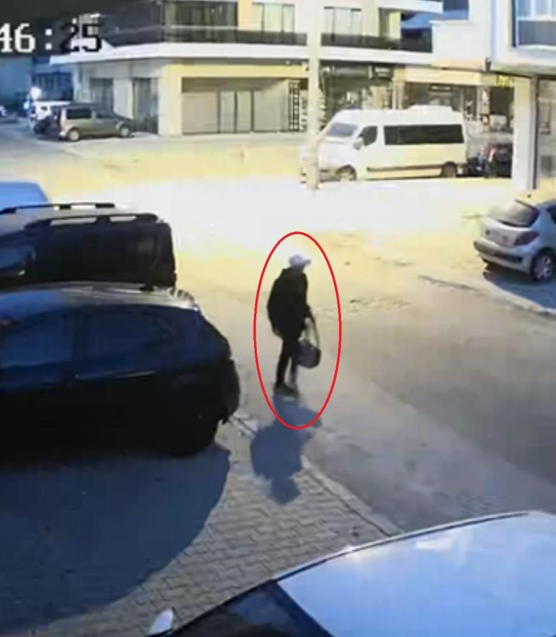 Araç içerisinde bulduğu ve içinde değerli eşyalar olan çantayı alarak dışarı çıktı.