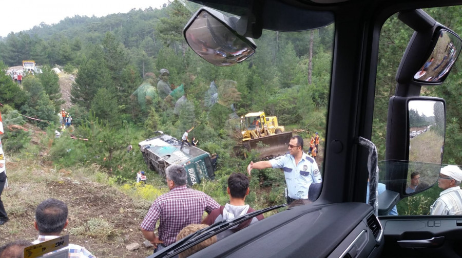 Edinilen bilgiye göre kaza Bursa'nın dağ ilçesi Harmancık yakınlarında meydana geldi. İddiaya göre cenazeye giden vatandaşların içinde bulunduğu otobüs, sürücüsünün kontrolünden çıkıp, devrildi. Olay yerine çok sayıda ambulans ve itfaiye ekibi sevkedildi. Kazada ilk belirlemelere göre iki kişinin öldüğü 25 kişinin yaralandığı belirtildi. Yaralıların büyük çoğunluğunun Harmancık Devlet Hastanesi'ne götürüldüğü öğrenildi