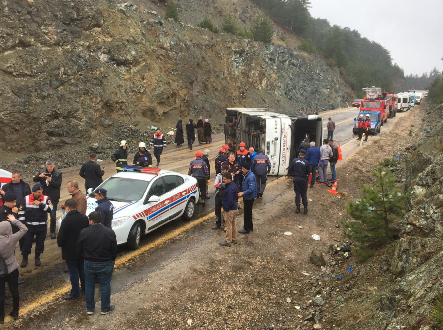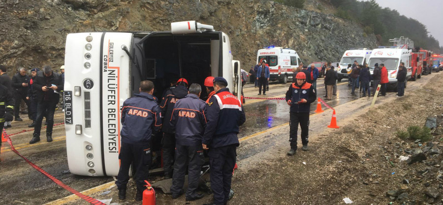 Edinilen bilgiye göre, Osmangazi'ye bağlı Soğanlı Mahallesi'nden aldığı vatandaşları Keles ilçesinin Harmanalan köyündeki cenazeye götüren 16 BLD 17 plakalı ilçe belediyesine ait otobüs, Bursa-Keles kara yolunun Karaıslak köyü yakınlarında yan yattı. Kazada tam bir can pazarı yaşandı. Şoförle birlikte 35 kişi yaralandı. Olay yerine AFAD, UMKE, jandarma, 112 ve Büyükşehir Belediyesi ekipleri sevk edildi.