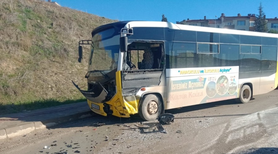 Bursa'nın İnegöl ilçesinde meydana gelen kazada otomobil ile özel halk otobüsü kafa kafaya çarpıştı; 1 kişi yaralandı.