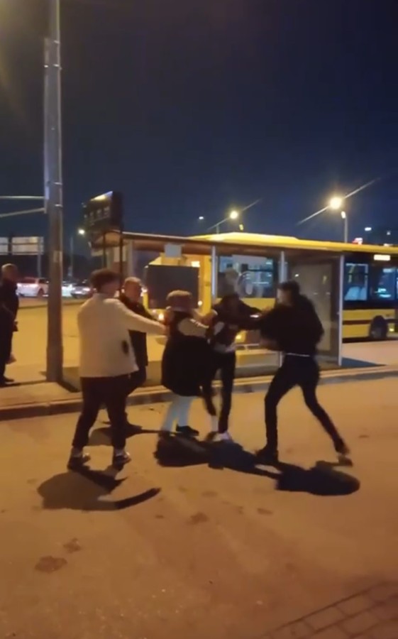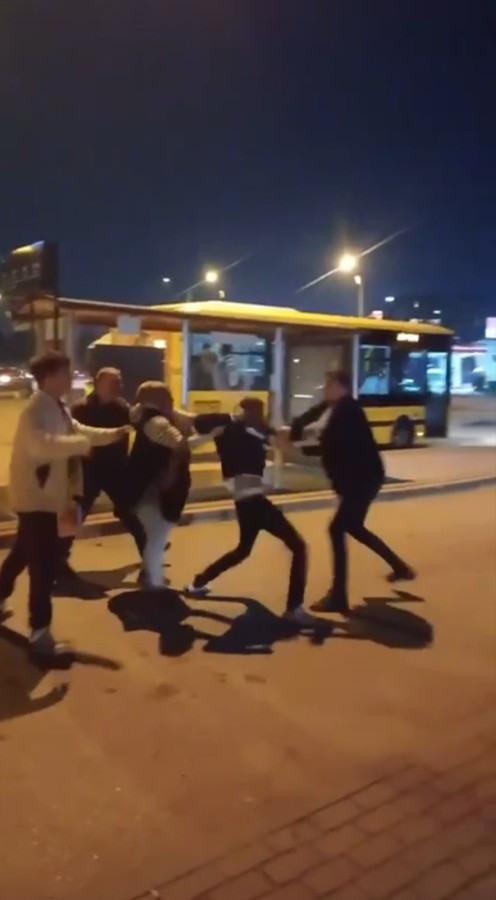Yolcunun da aşağı inmesiyle artan tansiyon yerini kavgaya bıraktı. Tarafların ortamı boks ringine çevirdiği anlar kameraya anbean yansırken, çevredekiler iki şahsı güçlükle ayırdı.