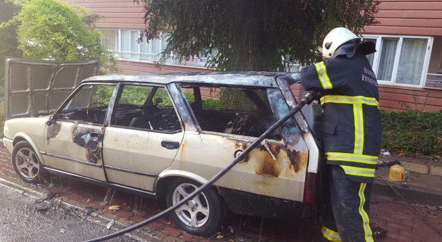 Otomobil kullanılmaz hale gelirken, yanında bulunan ağacın da dalları yandı. Otomobilin alev topuna dönmesi bir vatandaşın cep telefonu ile çektiği görüntüye saniye saniye yansıdı. Polis ekipleri yangınla ilgili tahkikat başlattı.