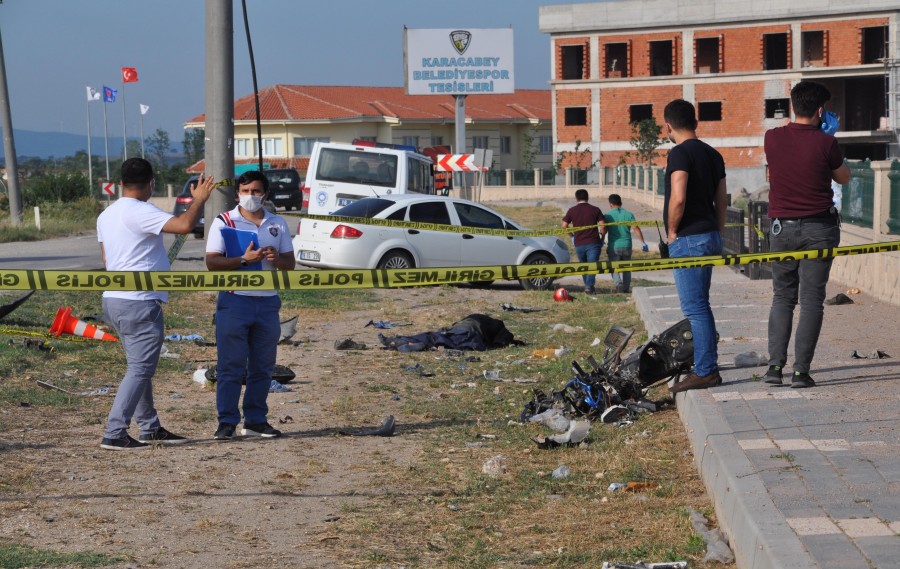Edinilen bilgiye göre, kaza saat 17.15 sıralarında Karacabey Boğaz yolu üzerinde meydana geldi. Boğazköy istikametinden ilçe merkezine seyreden Hidayet Y. (43) idaresindeki 16 DF 235 plakalı otomobil karşı yönden gelen Halit Durmuş'un (55) kullandığı plakasız motosiklet ile kafa kafaya çarpıştı. Çarpışmanın şiddetiyle motosiklet yol kenarına savrulurken, motosiklet sürücüsü Halit Durmuş, olay yerinde feci şekilde can verdi. Kaza sonrası motosiklet hurdaya dönerken, otomobilde de büyük hasar oluştu. Olay yeri incelemesinin ardından, Halit Durmuş'un cenazesi Karacabey Devlet Hastanesi morguna kaldırıldı. Otomobil sürücüsü Hidayet Y. gözaltına alınırken, polis ekiplerinin kazayla ilgili soruşturması sürüyor. Öte yandan feci kaza, güvenlik kameralarına yansıdı. Görüntülerde, motosiklet ve otomobilin kafa kafaya çarpıştığı, motosiklet sürücüsü Halit Durmuş'un metrelerce havalandığı görüldü.