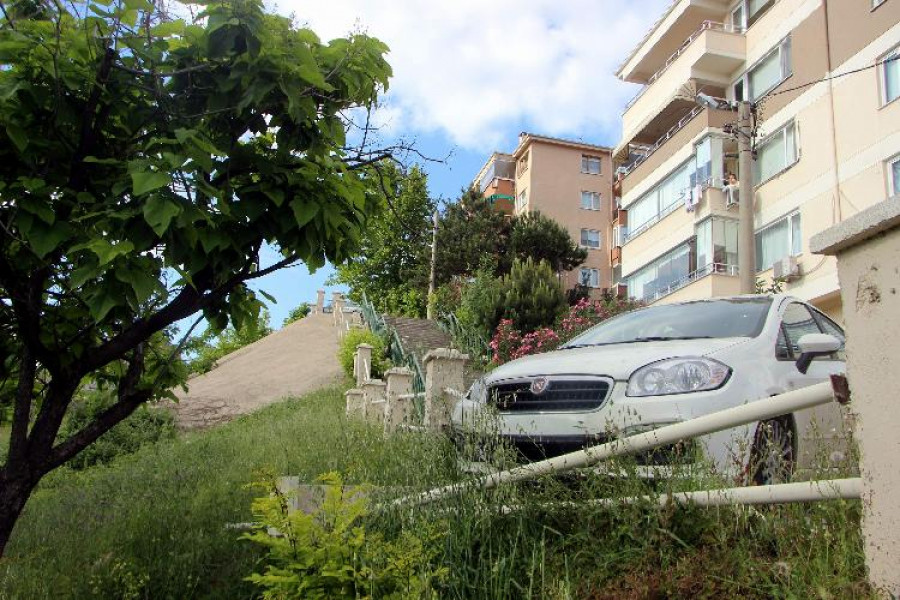 Park halindeki otomobil 20 metrelik merdivenlerden uçtu. Her gün yüzlerce kişinin kullandığı merdivenlerde şans eseri ölen ya da yaralanan olmadı