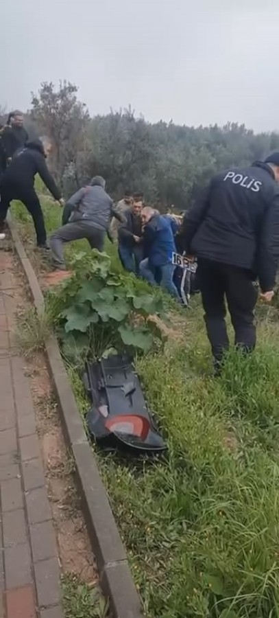 Bursa'da şarampole yuvarlanan otomobilde 3 kişi yaralandı. Yaralılar hastanede tedavi altına alındı.