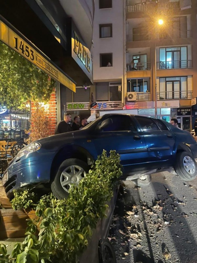 Kafede bulunan müşteriler olan biteni anlamaya çalışırken otomobilin çarptığı yerde kimsenin bulunmaması olması muhtemel bir faciayı önledi.