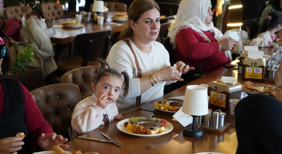 Bursa'da çocuklar ve ailelerinin üye olduğu 12 özel gereksinimli dernekle irtibata geçen firma yetkilileri, 400'ün üzerinde aile ve çocuğu restoranında ağırladı. Özel kahvaltıdan, böreği, çikolatadan patates kızartmasına kadar her şeyin bulunduğu tabağı gören çocuklar mutluluklarını gizleyemedi. Aileleriyle unutulmaz bir sabah kahvaltısı yapmanın tadına varan çocuklar bol bol fotoğraf da çektirmeyi de ihmal etmedi.