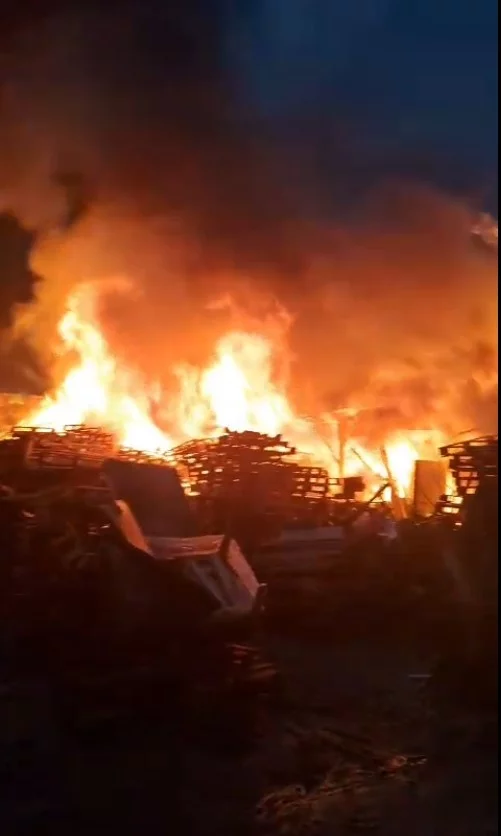 Bursa'da bir ahşap palet fabrikasında henüz bilinmeyen bir nedenle yangın çıktı. Yangının kısa sürede büyümesi üzerine çevrede panik yaşandı.