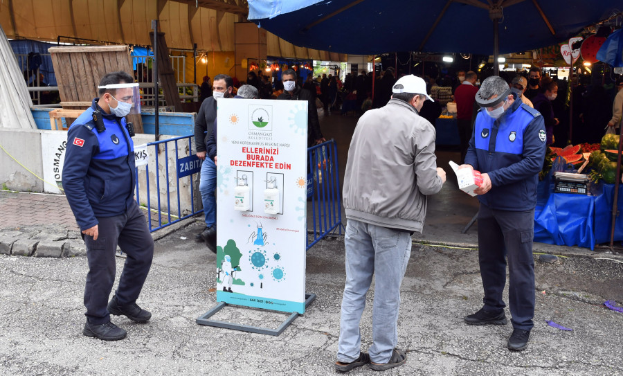 Osmangazi Belediyesi, sokağa çıkma yasağının ardından ilçede kurulan semt pazarlarında yoğunluk yaşanmaması için bütün tedbirleri aldı. Demirtaş, Hürriyet, Ziraat, Yenibağlar, Dikkaldırım, Ovaakça, İvazpaşa, Bağlarbaşı, Hamitler, Alemdar, Reyhan ve Tuzpazarı'nda kurulan pazar yerlerinde herhangi bir olumsuzluk yaşanmaması için zabıta ekipleri büyük gayret gösterdi. Zabıta ekipleri, pazar yerine gelen vatandaşların ateşini ölçerken, maskesiz gelenlere ise maske verdi. El dezenfektanları da sıkılarak, pazar alanına girişler sağlandı. Ekipler ayrıca, esnaf ve vatandaşlara sosyal mesafeye uymaları yönünde çağrıda bulundu. Zabıta ekiplerinin bu uygulaması, esnaf ve vatandaşları oldukça memnun etti.