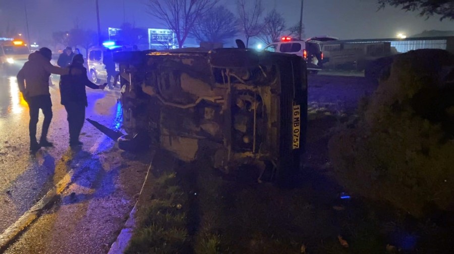 Kaza saat 22.30 sıralarında Bursa-Ankara karayolu üzeri İnegöl ile Alanyurt'u birbirine bağlayan köprülü kavşakta meydana geldi. Ankara istikametinden gelip köprülü kavşağa giriş yapan Suriye uyruklu sürücü Ahmad Hawık (29) yönetimindeki 16 MB 0757 plakalı otomobil, yağışla kayganlaşan yolda kontrolden çıktı. Savrulan otomobil, yeşil alana uçup takla atarak yan durdu. Kaza sonucu sürücü yaralandı. Yaralı, özel araçla İnegöl Devlet Hastanesine kaldırıldı.