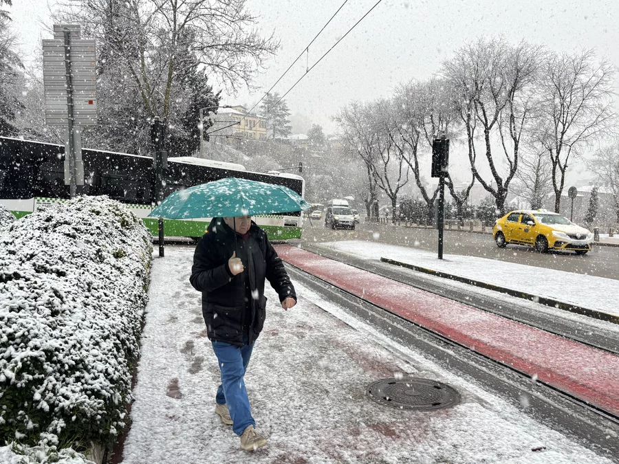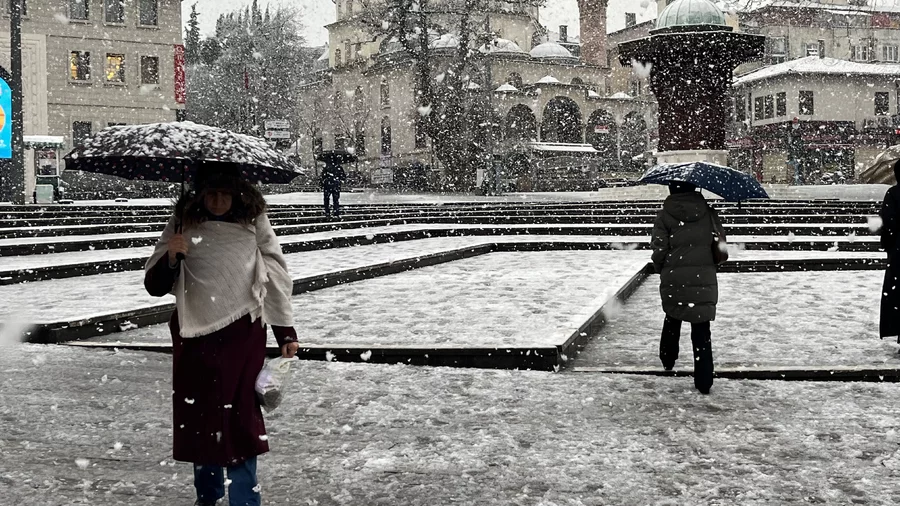 Bursa'da sabah saatlerinde etkili olan kar yağışı kenti adeta beyaza bürüdü. Meteoroloji'nin günler öncesinden yaptığı uyarıların ardından beklenen soğuk hava dalgası etkisini gösterirken, kent merkezinde başlayan kar yağışı vatandaşlara sürpriz yaşattı. Son günlerde hissedilen bahar havası yerini yeniden kış şartlarına bıraktı.
