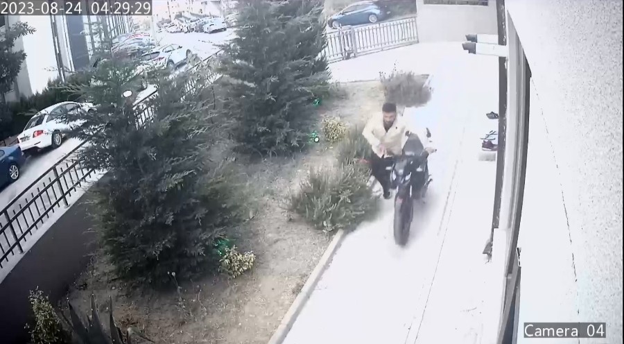 Hırsızlar daha sonra çaldıkları motosikleti çalıştırarak uzaklaştı.