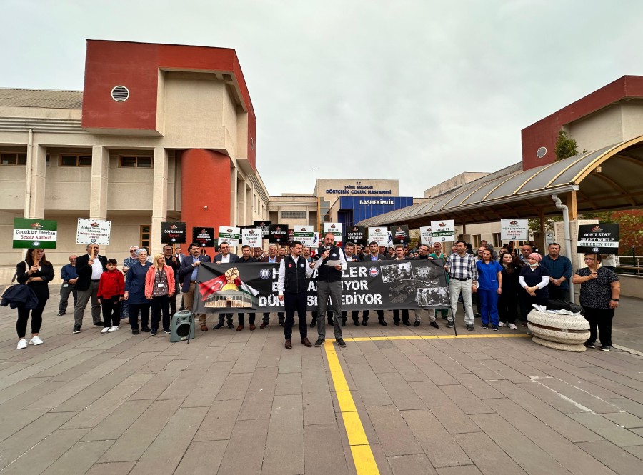 Şu ana kadar Gazze'ye atılan bombaların 12 bin ton olduğunu vurgulayan Yünkül, "Yazıklar olsun bu vahşeti görmeyenlere. Yazıklar olsun hastanelerin bombalanmasına göz yumanlara. Yazıklar olsun riyakarlık yaparak İsrail'e arka çıkanlara. Gazze'de hastane yok, ilaç yok, doktor yok. Yoğun bakımdaki bebekler çaresiz. Ölüme mahkûm edilmiş durumda. İnsan sağlığına hizmet eden kurumlara, hastanelere saldırı yapılması insanlık dışıdır, insanlık suçudur. Savaşlar dahil her dönemde hastaneler, saldırılmayan, en korunaklı alanlar olarak kabul görmüştür. Ancak bugün, katil İsrail, hastaneleri gözünü kırpmadan vurmaktadır. Katil İsrail'in hastaneye yaptığı hava saldırısında bebekler, çocuklar, kadınlar, yaşlılar, sağlık çalışanları hayatını kaybetmiştir. Bu saldırı, insanlık adına utanç vericidir. İnsanı yaşatmak için çaba gösteren sağlık çalışanının canına kast etmek insanlığı öldürmektir, vicdanlara savaş açmaktır. İnsan sağlığına hizmet eden kurumların hangi şartlarda, hangi gerekçe ile olursa olsun saldırıya maruz kalması kabul edilemez" ifadelerini kullandı.