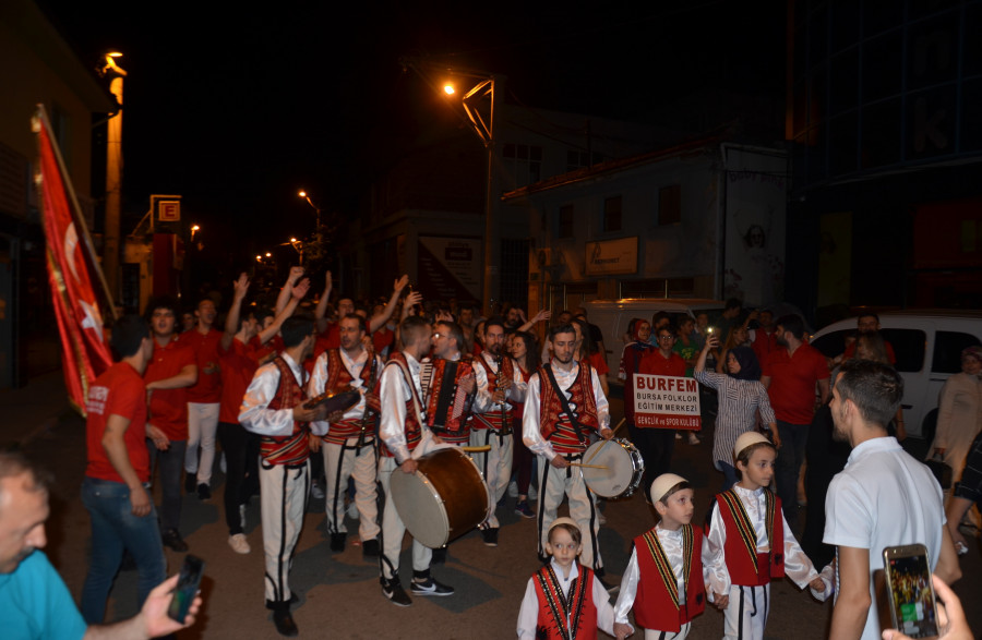 Bursa'nın merkez Osmangazi İlçesi Selamet Mahallesi'nde dernek merkezinde toplanan Bursa Folklor Eğitim Merkezi (BURFEM) üyesi gençler, giydikleri Rumeli yöresine özgü kıyafetler ile tef, davul, darbuka ve klarnet eşliğinde Balkan müziklerini çalarak, yöresel şarkılar söyledi. Gençler, Gülbahçe ve Selamet mahallelerinde sokak sokak dolaşıp buralarda oturanları müzikler eşliğinde sahura kaldırdı.