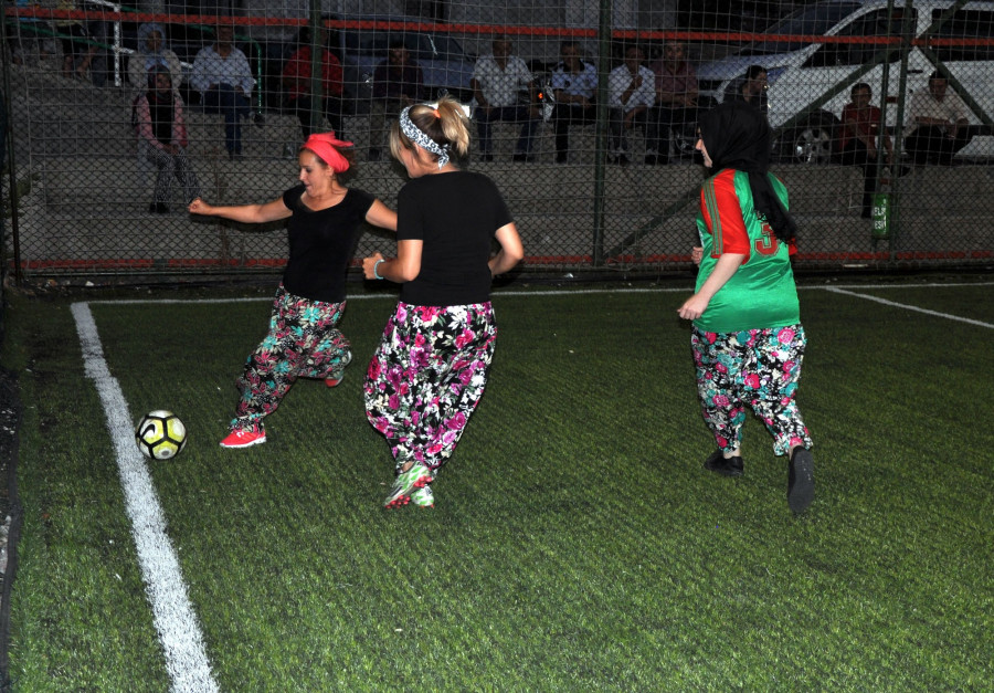 Bursa'da Orhaneli Belediyesi'nin ev sahipliğinde engellilere atölye kurmak için ilçe kadınları sahaya indi. Her iki takımın oyuncularının yöreye özgü şalvarlarla çıktığı maçın galibi 6-2 skorla Orhanelili kadınlar oldu.