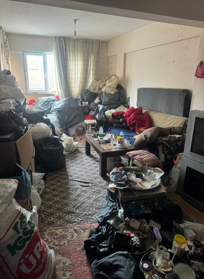Evin neredeyse tamamının çöplerle kaplı ve rahatsız edici bir kokunun geldiğini duyan Kandemir tekrardan kiracılarını evden çıkmaları konusunda ikaz etti. 9 aydan beri evini kullanamadığını belirten Mevlüt Kandemir, "9 ay önce evi satın alırken, evin içinde yaşlı bir çiftin oturduğunu tespit ettik. Evden çıkmaları için 6 ay gibi bir süre verdik. Süreç bitti, evden çıkmadılar. Sürekli 'Çıkacağız' diye oyaladılar. Komşulardan ve çevre halktan şikayetler gelmeye başladı. Kartonları toplayarak evin içine soktukları yönünde bilgiler aldım. Buraya her geldiğimde arkamdan polis geliyor. Her geldiğimde beni telefondan tehdit ediyor. Evim 140 metrekare ama kullanılabilir alanı 3 metre. Evin içindeki çöpler yetmiyormuş gibi bir de çatıya çöp koymaya başladılar. Mahkeme süreci benim lehime sonuçlandı. Ve dün görevliler ile birlikte eve girmeye çalıştık ama mümkün olmadı. Daha sonra girdiğimizde de çöp ev ile karşılaştık ve hala daha çıkmamak için direniyorlar" diye konuştu.