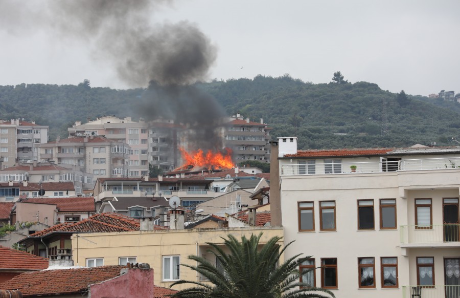 Edinilen bilgiye göre, Mudanya'nın Şükrü Çavuş Mahallesi'nde bir apartmanın çatısında kaplama yapılırken yangın çıktı. Kısa sürede çatıyı saran alevler alt katlara da sıçradı. Mahalle sakinlerinin itfaiye ekiplerine haber vermesiyle Bursa Büyükşehir Belediyesi ve Mudanya Belediyesi itfaiye ekipleri olay yerine gelerek yangına müdahaleyi sürdürüyor. Çatıda başlayan yangının alt katlara da sıçradığı ve iki dairenin kullanılamaz hâle geldiği öğrenildi. Yangında can kaybı yaşanmazken, itfaiye ekipleri alevleri kontrol altına almaya çalışıyor.