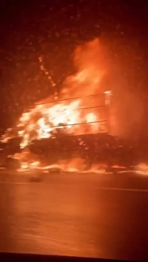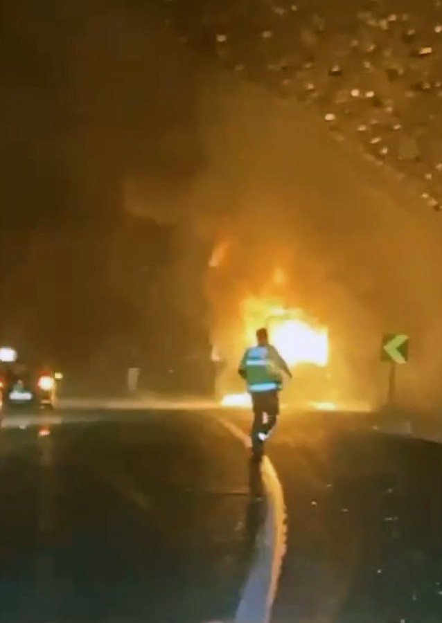 Bursa'da seyir halindeki bir kamyonet, alev alev yanarak kül olurken o anlar kameraya yansıdı.