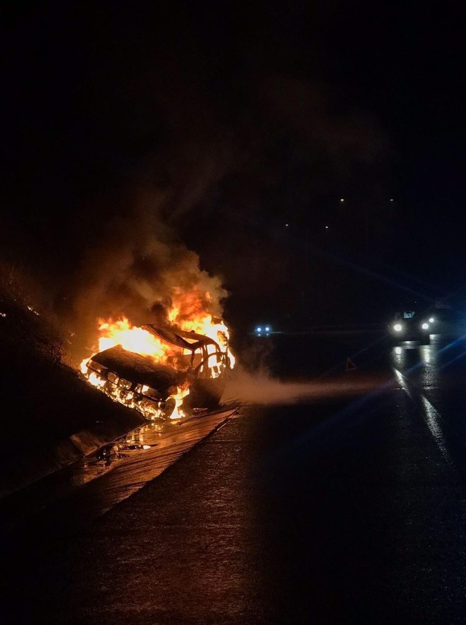 Edinilen bilgiye göre, seyir halindeki otomobil bir anda alev aldı. Sürücü hemen aracı yol kenara çekerek alev topuna dönen otomobilden canını kurtardı. İhbar üzerine olay yerine gelen polis ekibi çevrede güvenlik önlemi alırken itfaiye ekipleri de yangını söndürdü. Otomobil hurda yığınına dönerken yaralanan kimse olmadı.