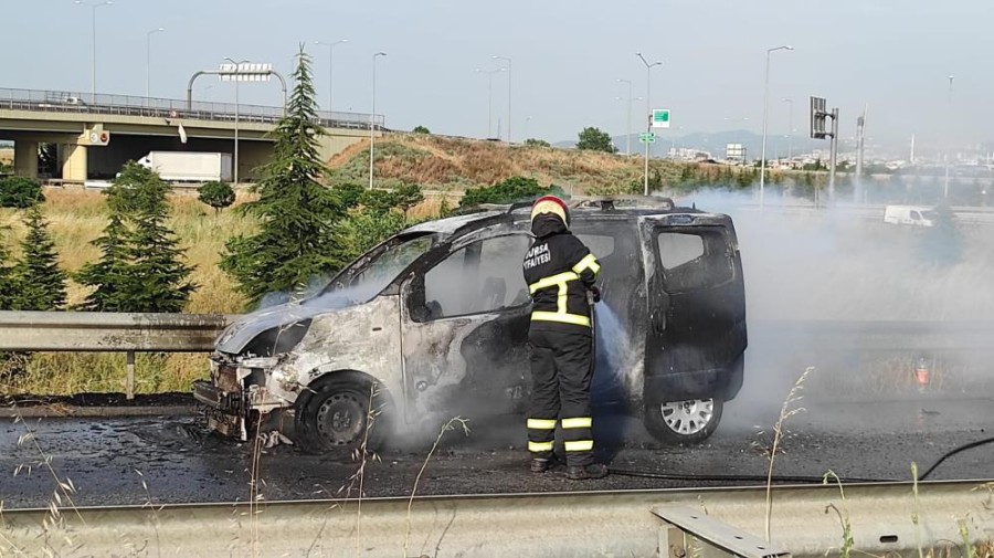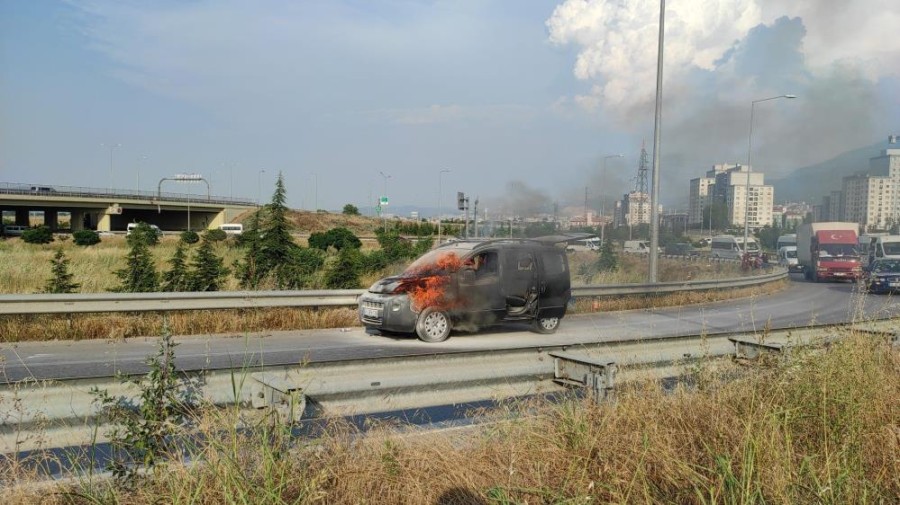 Bursa'da seyir halindeki otomobil alev alev yanarak kullanılmaz hale geldi.