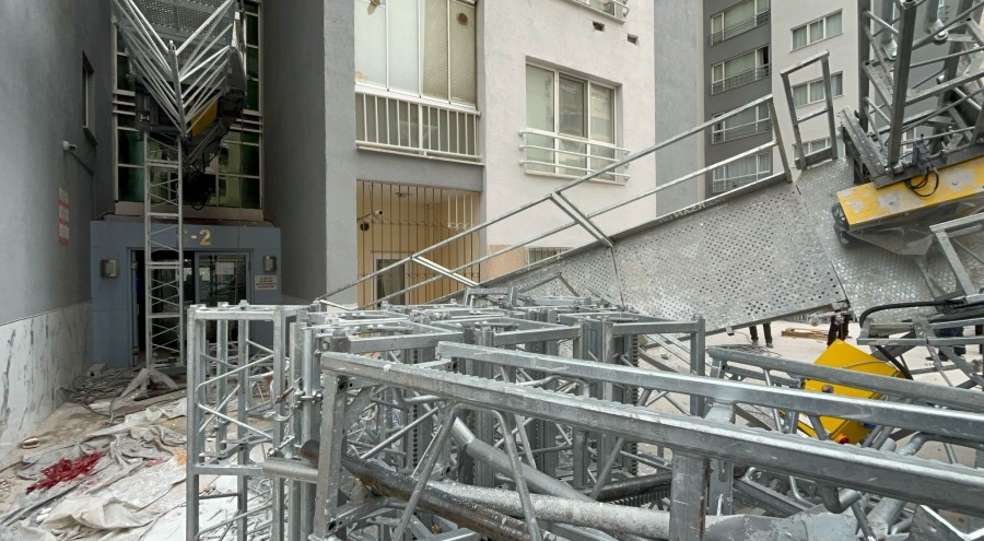 Bursa'da dış cephe yapan işçi, iskelenin devrilmesi sonucu yaklaşık 10 metre yükseklikten düşerek yaralandı.