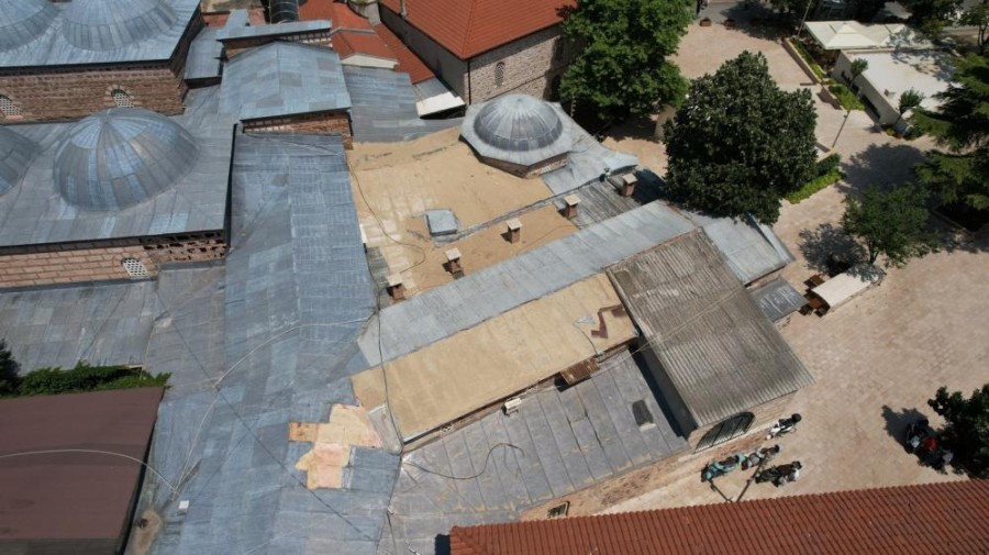 Bursa tarihi Kapalı Çarşı'nın bir bölümünü oluşturan Yorgancılar Çarşısı'nın çatısını kaplayan kurşunların bir kısmı çalındı.