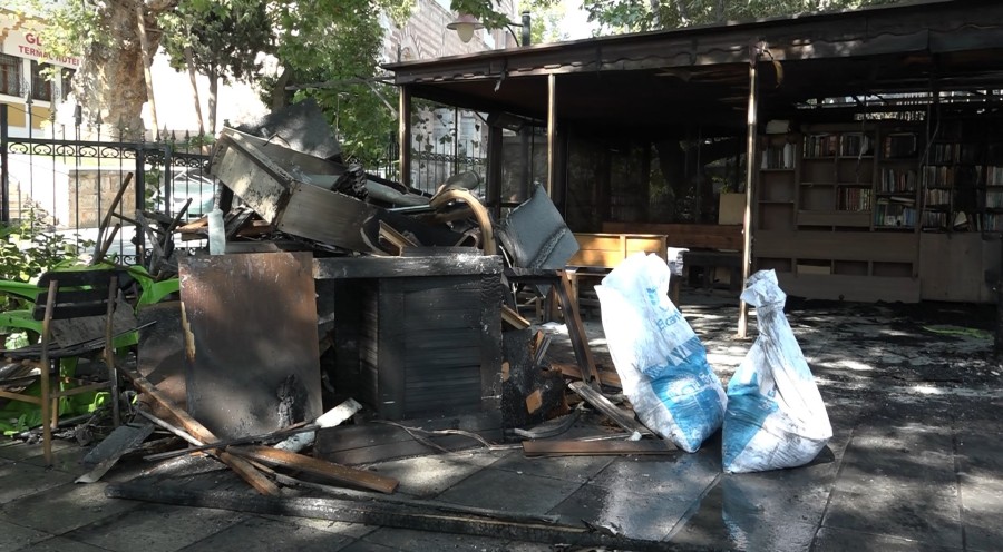 Ahşap yapıdaki alevler söndürülürken, Bursalıların simge mekanlarından tarihi çay bahçesi kullanılamaz hale geldi. Hatıraların da yok olup gittiği çay bahçesine gelen çalışanlar, yanan kitapları ve malzemeleri çuval çuval temizledi.