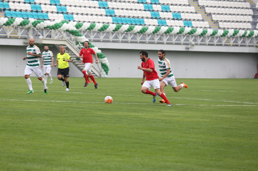 Açılışın ardından, Ertuğrul Sağlam yönetiminde Bursaspor'un şampiyon kadrosundaki Ivankov, Pablo Martin Batalla, Ömer Erdoğan, Turgay Bahadır, Giani Krita, İbrahim Öztürk, Ali Tandoğan, Bekir Ozan Has gibi isimlerin yer aldığı Bursaspor Takımı ile Türkiye Milli Takımı'nın efsaneleri olan Rüştü Reçber, Ergün Penbe, Emre Aşık, Ogün Temizkanoğlu gibi isimlerin yer aldığı Bülent Korkmaz ve Hakan Ünsal yönetimindeki Milli Takım karması gösteri maçı yaptı. Mücadelenin başlama vuruşunu Nilüfer Belediye Başkanı Mustafa Bozbey gerçekleştirdi. Tribünlerin yoğun ilgi gösterdiği karşılaşma, büyük heyecana sahne oldu. Bursasporlu futbolcular, attığı gollerden sonra 'Timsah yürüyüşü' yaparak sevincini tüm tribünlerle paylaştı. Karşılaşmayı Buraspor'un şampiyon kadrosu 2-1 kazandı.