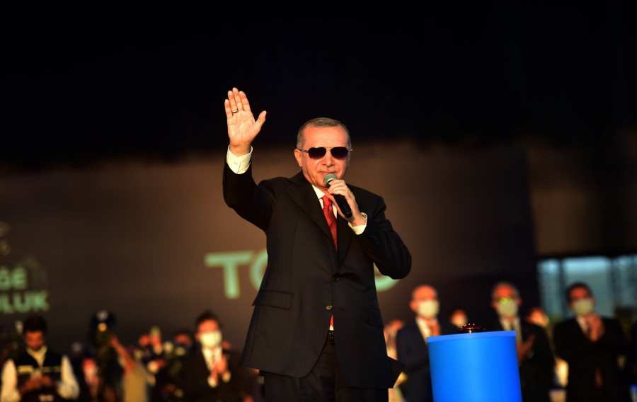 Şeytan taşlarken tavafı da yaptıkları söyleyen Erdoğan, "Son 18 yılda tabiri caizse hem şeytan taşladık, hem da tavaf yaptık. Sıkıntıların, eksikliklerin hepsinin büyüklüğü karşısında geri adım atmadık. Asla umutsuzluğa kapılmadık. Ne dedik? Beş yiğit adam dedik. Sonunda beş yiğit adamla yola çıktı. Ölmek var, dönmek yok. Herhangi bir aksilik, şu, bu oldu. Devletimizin hazinesi, maliyesi bu işi bitirmeye yeter. CHP'nin takoz siyasetine rağmen, sonuçta ülkemizi sanayiden üretime, sağlıktan milli teknolojiye kadar her alanda hayallerine kavuşturduk. Çünkü biz bu ülkeye, bu millete güveniyoruz. Biz Türkiye'nin potansiyeline, Türk milletinin zorluklarla mücadele azmine inanıyoruz. Biz, iman varsa imkan da varır şiarıyla hareket ediyoruz. Milletimiz bu samimiyetimizi görüyor, destekliyor. 27 Aralık'ta kamuoyuna sunduğumuz bu proje, milletimizden çok yoğun takdir topladı. Anketler milletimizin bu projeyi destekleme oranının yüzde 85'in üzerinde olduğunu gösterdi. Salgın döneminde bir yandan fabrika inşaatına başlamak için bütün süreçleri tamamlarken, 78'i Türk firmalardan oluşan tedarikçi seçiminin büyük kısmını tamamladık. Tescil işlemleri bitti. Rusya, Güney Kore ve Amerika'daki tasarım çalışmaları devam ediyor" diye konuştu.