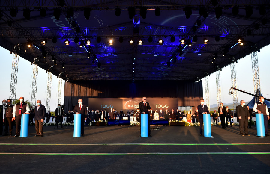 Cumhurbaşkanı Recep Tayyip Erdoğan, Bursa'da 2 yıl sonra tamamlandığında 5 bin kişiye istihdam sağlayacak, 22 milyar lira bütçe ile Türkiye'nin otomobilinin üretileceği TOGG Mühendislik, Tasarım ve Üretim Tesisleri inşaatının temel atma törenine katıldı. Törende konuşan Cumhurbaşkanı Erdoğan, "Dünyanın birçok yerinde ses getirdi. Milletimiz on yıllardır hasretini çektiği bu projede büyük teveccüh gösterdi. Meyve veren ağaç taşlanır. Altmış yıl sonra da olsa insanımız için nasıl ümit olmuşsa, bazı çevrelerin kabusu oldu. Ülkemizin güçlenmesinden, öz güveninin artmasından rahatsızlık duyanlar yoğun karalama kampanyası başlattı. Hayatlarında ülke ve millet hayrına bir tek çivi dahi çakmamış olanlar, koro halinde iftira atma yarışına koyuldular. 83 milyonun sevincine ortak olmak yerine, komik gerekçelerle projede açık aramaya çıktılar. Otomobilin kaputu da, farı da var manşetleriyle aslında kendi seviyelerini, kendi cahilliklerini, aşağılık komplekslerini ortaya koydular. Bütün çabalarına rağmen, hamd olsun projede hiçbir kusur bulamadılar" dedi.