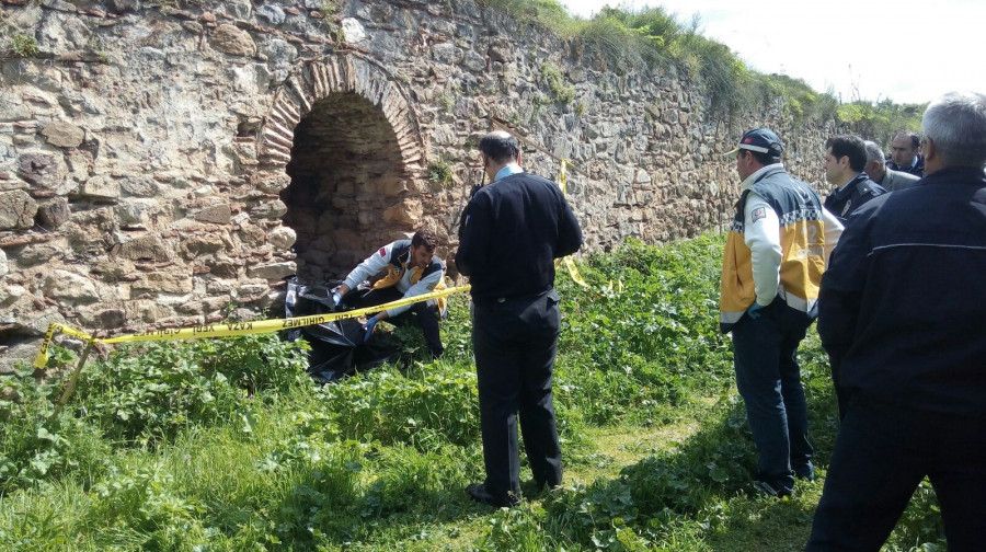Bursa'nın İznik ilçesinde tarihi surlarda erkek cesedi bulundu.