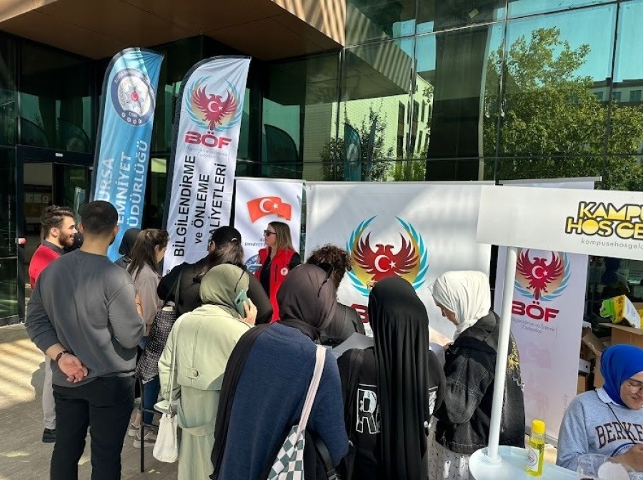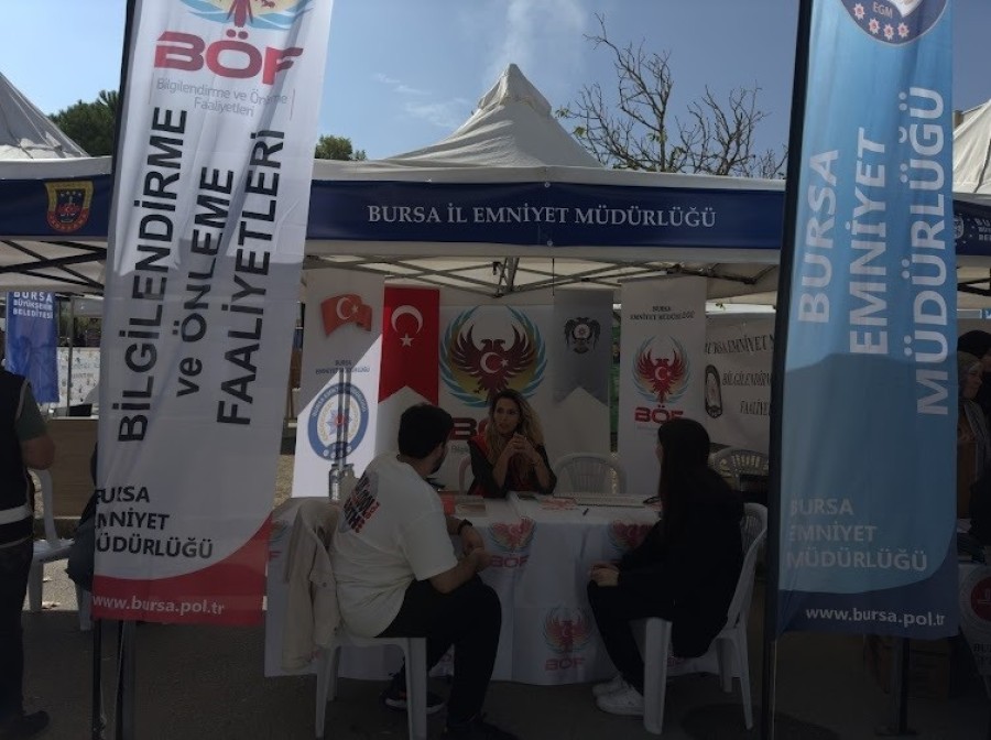 Bursa Emniyet Müdürlüğü Terörle Mücadele Şube Müdürlüğü, 'bilgilendirme ve önleme faaliyetleri' dahilinde "El Ele Güvenli Geleceğe" projesiyle üniversite kampüslerinde, öğrencileri propagandalara karşı bilinçlendirmek için stant kurdu.