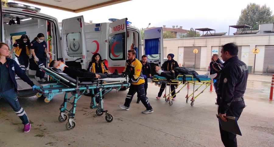 Kaza yerine 112 ve polis ekipleri sevk edildi. Yaralılar olay yerine sevk edilen ambulanslarla İnegöl Devlet Hastanesi'ne kaldırıldı.