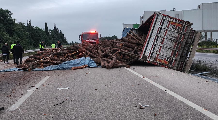 Kaza, saat 05.45 sıralarında Bursa-Balıkesir karayolu üzerinde Güllüce Mahallesi sınırları içerisinde meydana geldi. Edinilen bilgilere göre, Sertaç A. (28) idaresindeki 10 ED 729 plakalı odun yüklü kamyon, Bursa istikametine seyir halindeyken sürücüsünün direksiyon hakimiyetini kaybetmesi sonucu refüje girerek devrildi.