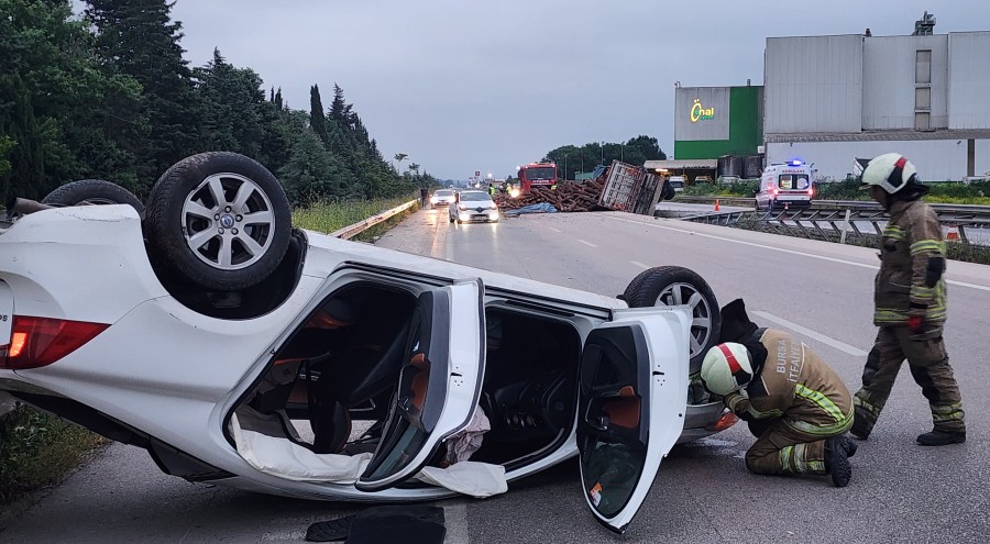 Kamyonun kasasındaki odunlar, Balıkesir istikametine dökülerek yolu kapattı. Bu sırada Balıkesir yönüne doğru ilerleyen Eser H. (49) yönetimindeki 34 JD 5606 plakalı otomobil, yola savrulan odunlara çarptı. Çarpmanın etkisiyle takla atan otomobil, yaklaşık 100 metre sürüklendi. Kazada kamyon sürücüsü Sertaç A. ile otomobilde bulunan 2 kişi hafif şekilde yaralandı.