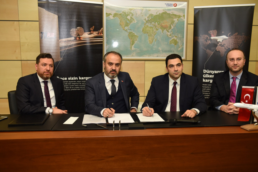 Bursa'da vefat edenlerin cenazelerinin uçakla memleketlerine naklini sağlayacak protokol, Büyükşehir Belediye Başkanı Alinur Aktaş ile Türk Hava Yolları (THY) Kargo Pazarlama Başkan Yardımcısı Murat Yalçın Kırca arasında imzalandı.