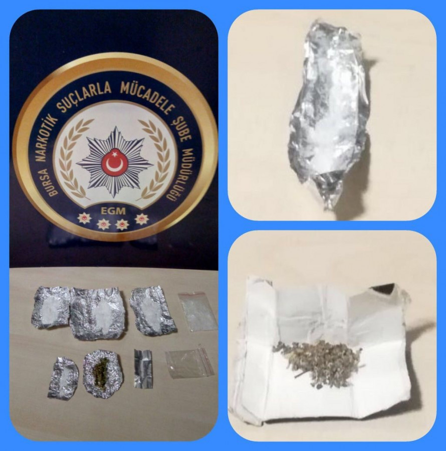 Bursa Narkotik Suçlarla Mücadele Şube Müdürlüğü ekipleri, uyuşturucu kullandıkları belirlenen İ.Ç., C.D. ve Y.D.'yi gözaltına aldı. Şahısların üstünü arayan ekipler, çeşitli miktarlarda metamfetamin ve sentetik kannabinoid ele geçirdi. Gözaltına alınan şüphelelere uyuşturucu sattıkları tespit edilen D.A., M.Ş.C. ve Y.K. de kısa sürede yakalandı. Şahısların üzerlerinde ve evlerinde arama yapan polis, satışa hazır halde uyuşturucu ele geçirdi.
