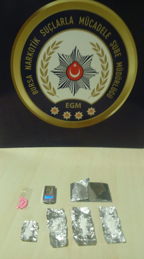 Bursa İl Emniyet Müdürlüğü Narkotik Suçlarla Mücadele Şube Müdürlüğü ve Asayiş Şube Müdürlüğü ekipleri, ortak uyuşturucu operasyonu düzenledi. İl genelinde farklı adreslere düzenlenen operasyonlarda S.Ö., K.K. ve M.Ö. gözaltına alındı. Şüphelilerin evlerinde yapılan aramada bir miktar bonzai, kokain, metamfetamin ve 10 adet ectasy tablet ile 2 adet hassas terazi ele geçirildi. 3 şüpheli uyuşturucu ve uyarıcı madde ticareti yapmak suçundan adliyeye sevk edildi.