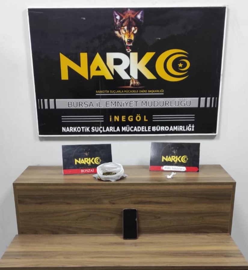 Bursa İl Emniyet Müdürlüğü Narkotik Şube Müdürlüğü İnegöl Büro Amirliği ekipleri takip ettikleri Serhat K. (33) isimli şüpheliyi yakaladı. Üzerinde yapılan aramada yaklaşık 50 gram bonzai uyuşturucu maddesi ele geçirildi.