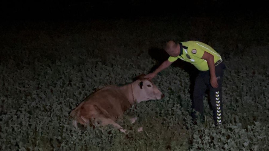 Çevre yolunda seyreden Celal T. yönetimindeki otomobil, aniden yolan çıkan büyükbaş hayvana çarptı.