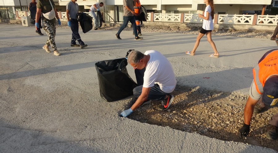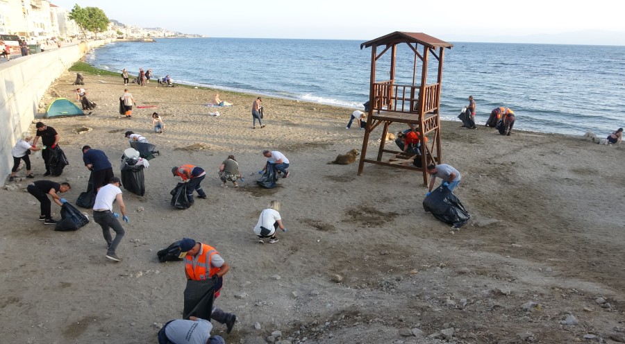 Mudanya Belediye Başkanı Deniz Dalgıç ve belediyede çalışan personeller vatandaşların bayram tatilince kirlettiği Güzelyalı Sahili'ni temizledi.