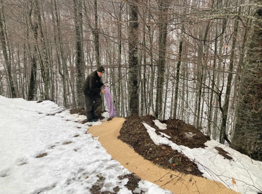 Tarım Orman Bakanlığı Doğa Koruma ve Milli Parklar Genel Müdürlüğü 2.Bölge Müdürlüğüne bağlı Bursa Şube Müdürlüğü Av Koruma-Kontrol ekipleri, yoğun kar yağışı ve zor kış şartlarında yem bulmakta güçlük çeken yaban hayvanları için doğaya yiyecek bıraktı.