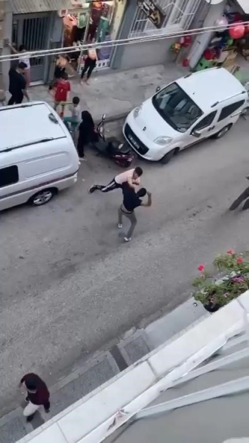 Kısa sürede büyüyen tartışma yerini kavgaya bırakınca sokak adeta ringe döndü.
