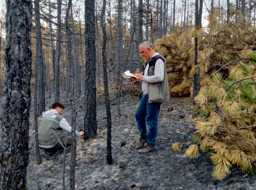 Bursa'nın Orhaneli ve Harmancık ilçelerinde yangın sonucu küle dönen yüzlerce hektarlık ormanlık alanda, Bursa Orman Bölge Müdürlüğü ekipleri tarafından hem havadan hem karadan sayım işlemi yapılıyor. Orman uzmanları, yanan ağaçları ve kurtarılabilecek bir filize kadar ormandaki bütün bölgeyi santim santim saydı.
