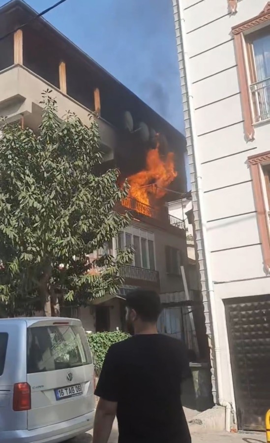 Bursa'da 3 katlı bir binanın 2. alev alev yandı. Mahalle sakinlerine korku dolu anlar yaşatan yangını, bölgeye hızla gelen itfaiye ekipleri söndürdü.