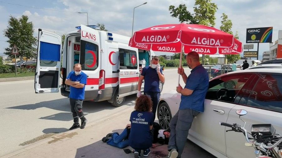 Kaza, İnegöl-Alanyurt yolu üzerinde meydana geldi. Edinilen bilgiye göre, Alanyurt'tan İnegöl'e seyir halinde olan sürücü Suat A. (30) yönetimindeki 16 KLJ 78 motosiklet, yanında seyir halinde olan sürücü Memet G. (34) yönetimindeki 16 KBS 65 plakalı otomobilin aynasına çarptı. Çarpmanın etkisiyle kontrolden çıkan motosiklet, yol kenarında park halinde olan 34 DSL 07 plakalı otomobile çarptı. Otomobile saplanan motosiklet üzerinden düşen sürücü ve eşi Fazilet A. (28) ağır yaralandı.