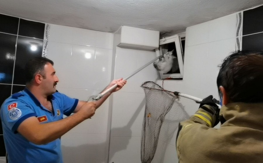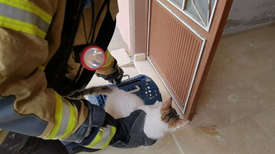Olay yerine gelen İtfaiye ekipleri, yoğun uğraşlar sonucu yavru kediyi kurtardılar.